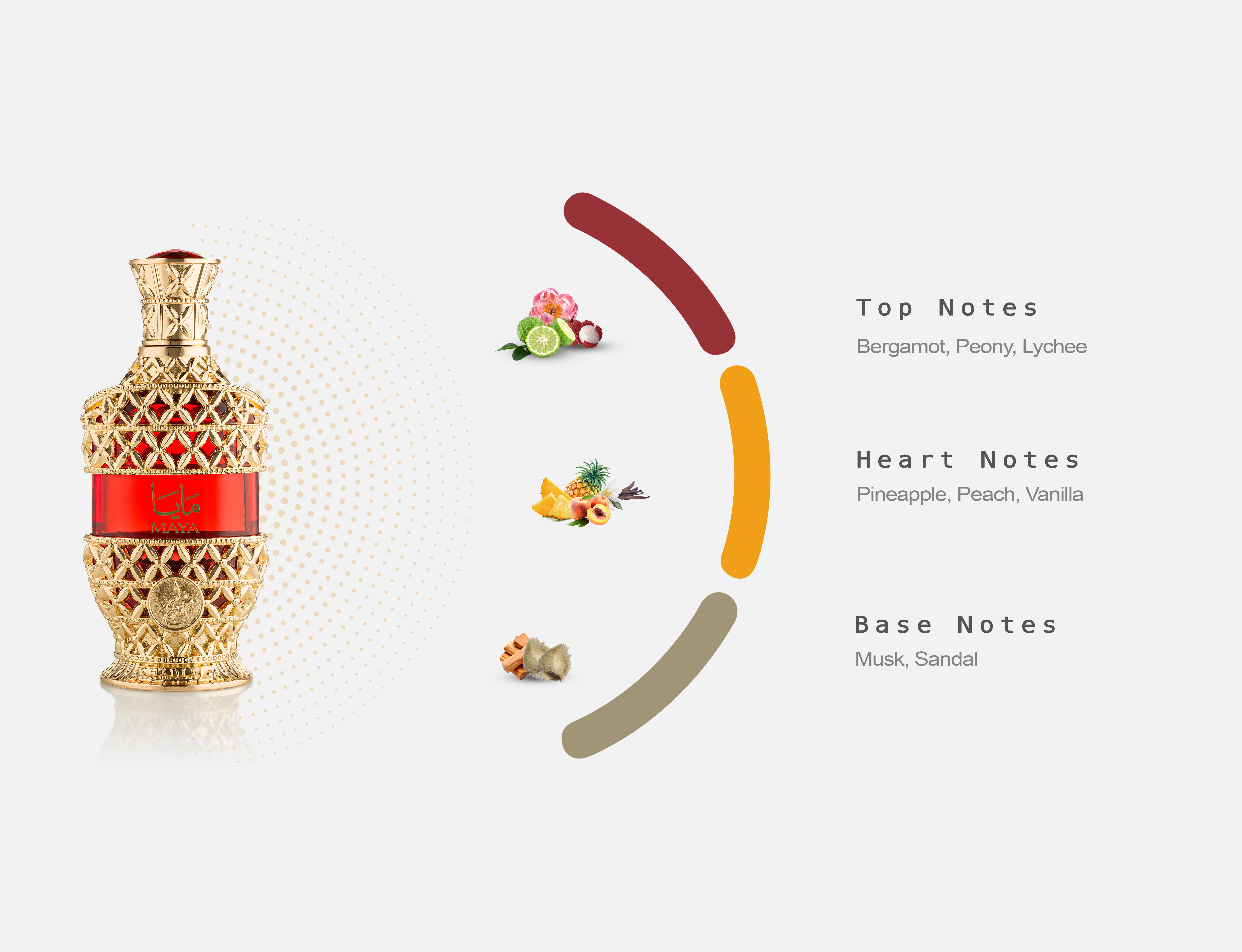 Indulge in the elegance of Khadlaj Maya Concentrated Perfume Oil, a captivating fragrance crafted to enchant the senses with its delicate yet vibrant composition. This exquisite concentrated perfume oil opens with a refreshing burst of citrus and floral sweetness, creating an inviting and uplifting first impression.