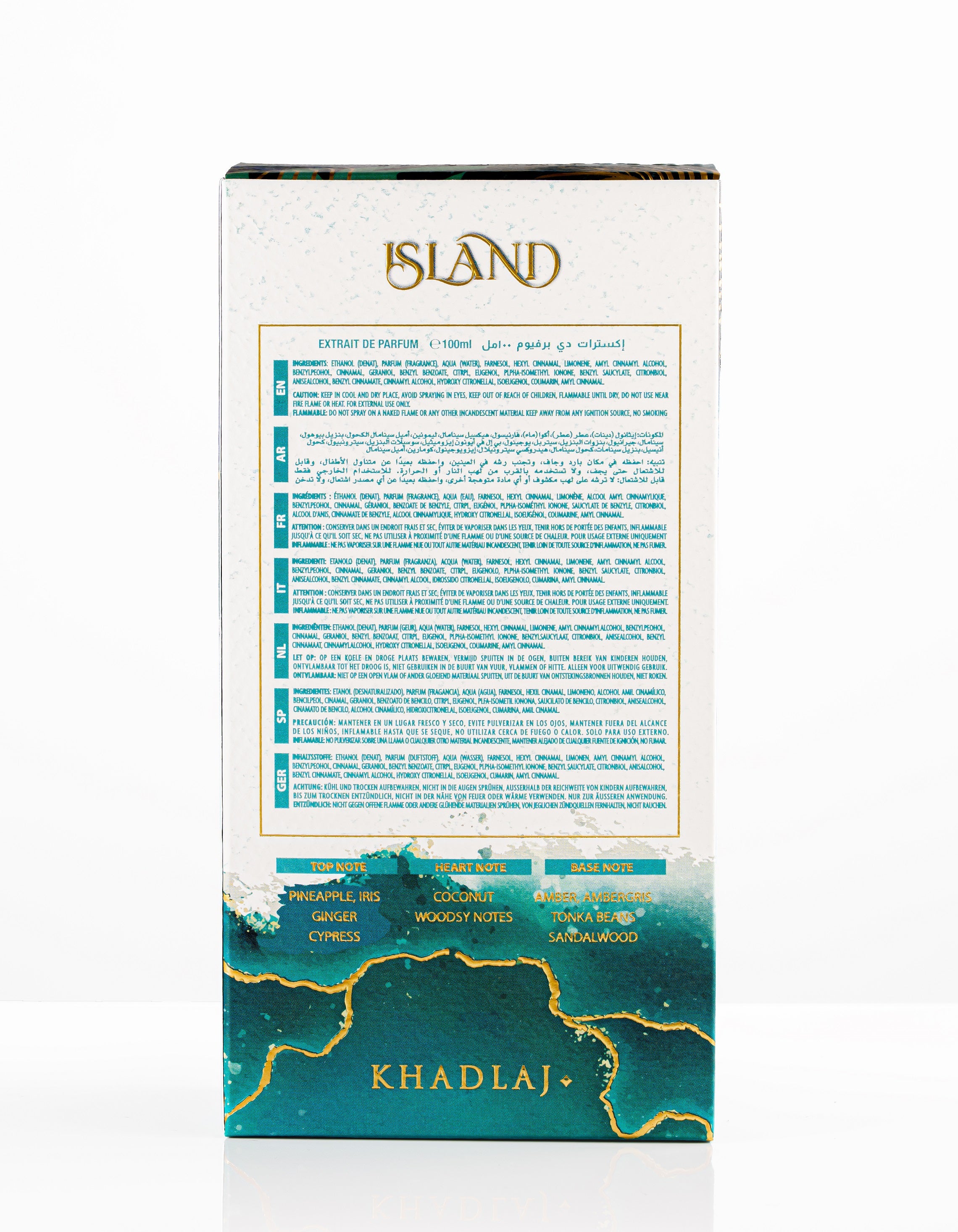 Introducing Khadlaj Island Extrait de Parfum – a luxurious 100 ml fragrance that exudes tropical sophistication.