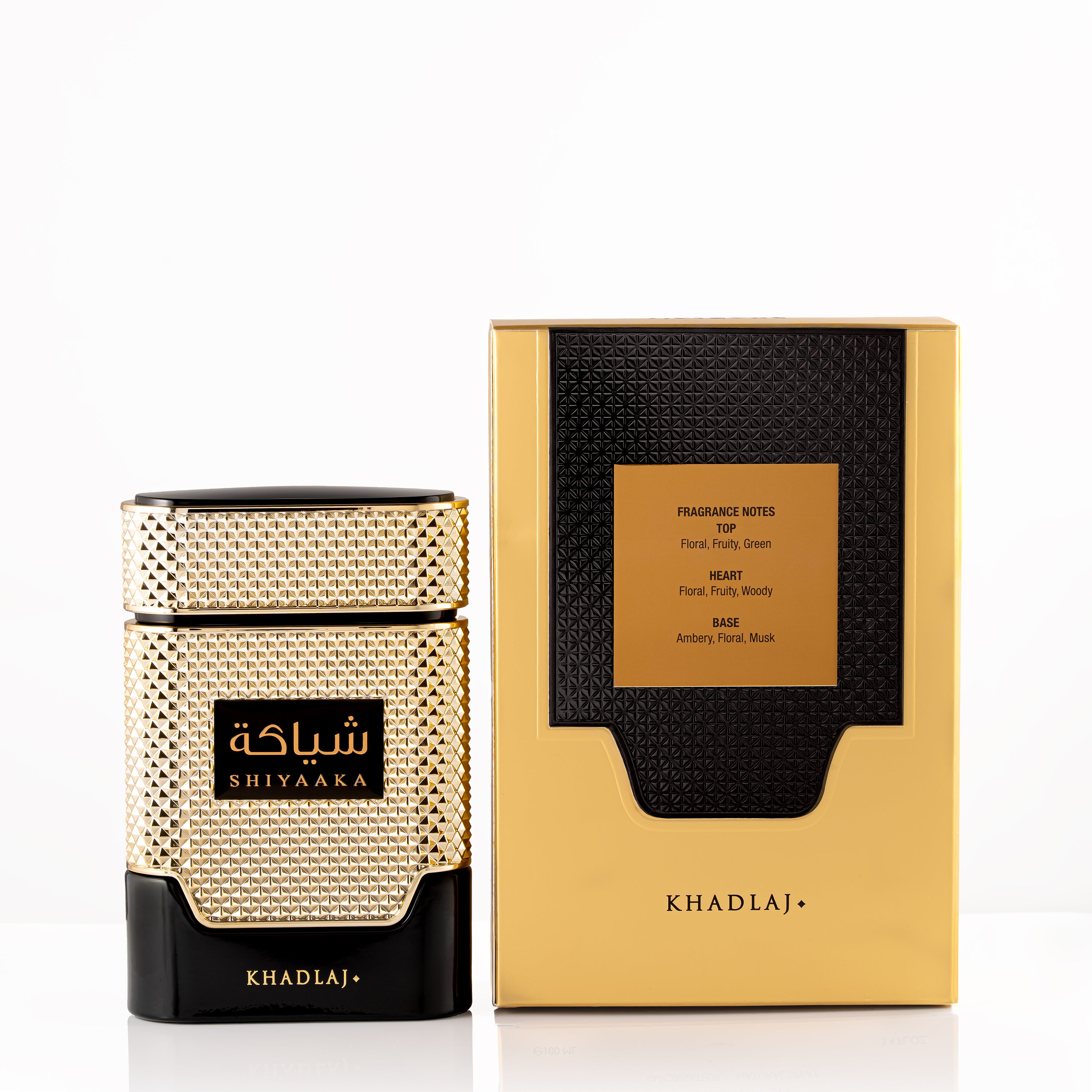 Shiyaaka Gold, a luxurious and captivating eau de parfum that embodies the essence of elegance and opulence. This exquisite fragrance takes you on a journey of indulgence, enveloping you in a golden aura of sophistication and allure.