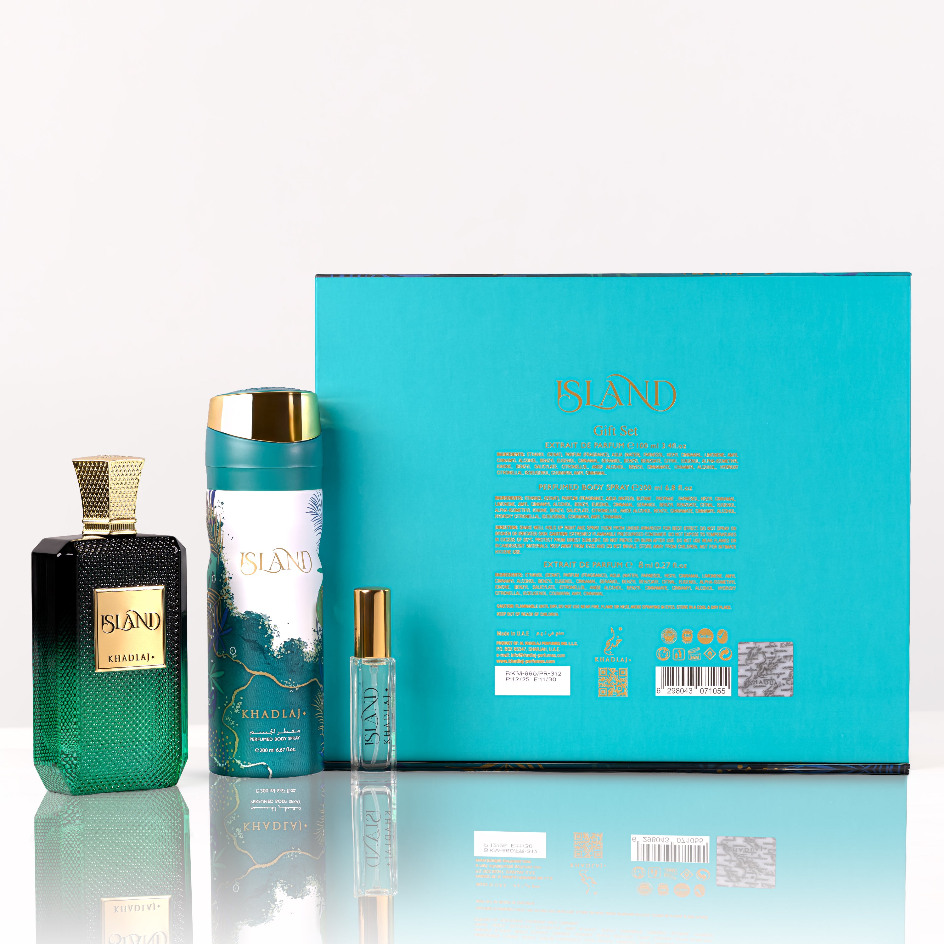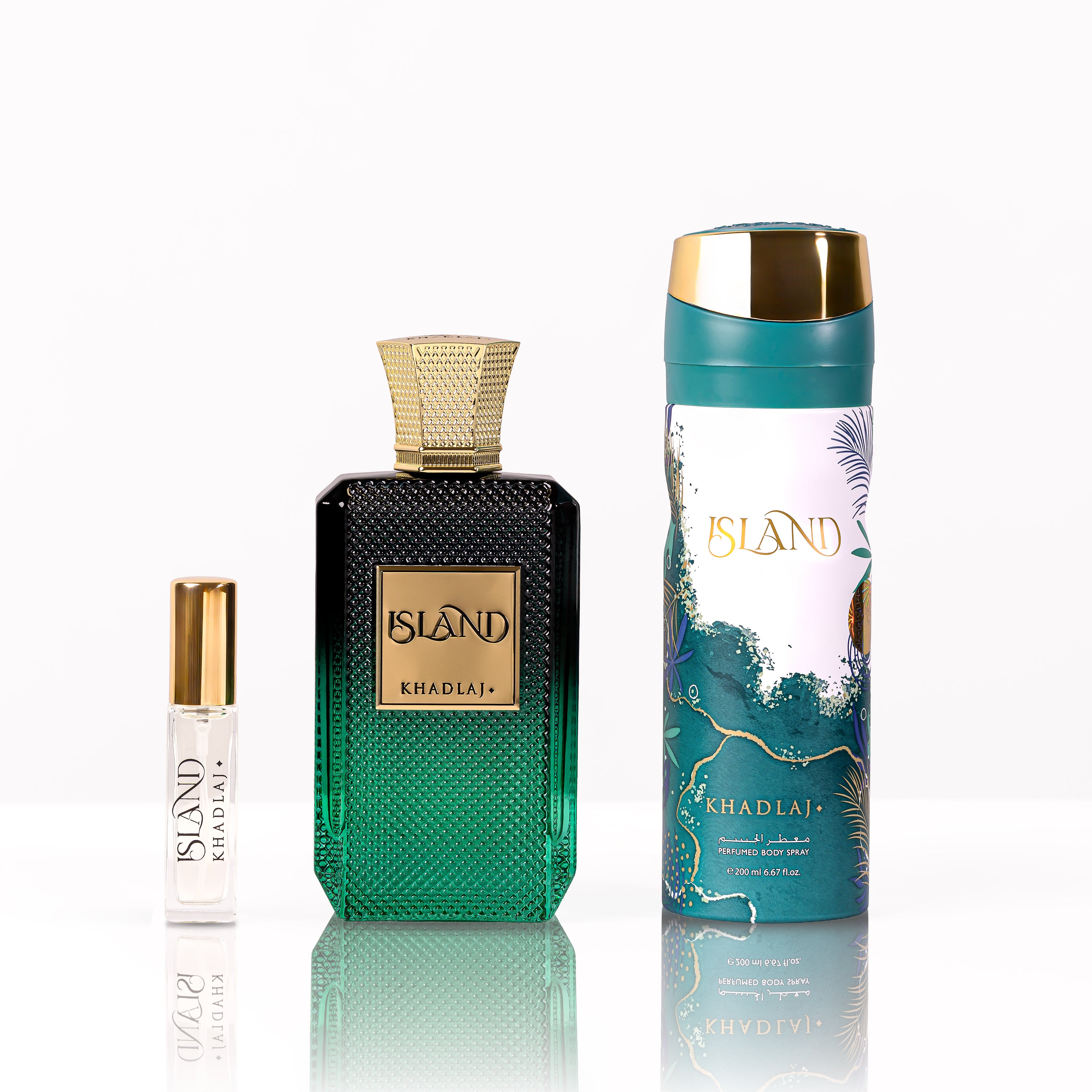 Beautifully packaged, the Khadlaj Island Gift Set makes a perfect gifting option for celebrations, festive occasions, or as a luxurious personal indulgence—an expression of style and fragrance harmony from the house of Khadlaj Perfumes.